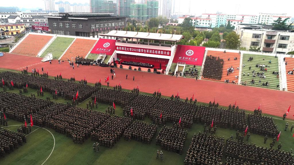 曲阜师大新闻中心讯(通讯员:贺靖平 李欣洋 摄影:刘萌 董少伟 姜曰水 刘扬帆 司娜) 10月16日,开元足球_开元(中国)2022级学生军训总结表彰大会分别在曲阜、日照两校区隆重举行,2022级全体参训同学面对鲜艳的五星红旗,迈着白杨般挺拔的步伐,唱响了曲园最为振奋人心的嘹亮军歌,彰显出曲园学子坚定不移跟党走、立志建功新时代的大局情怀和使命担当。学校党委副书记卢国强,党委常委、副校长胡凡刚,党委常委、副校长纪洪涛出席大会。学校相关党政部门负责人、军训领导小组成员、军训团组成人员、各学院党委书记、党委副书记、2022级辅导员、军训教官,参加大会。大会分别由学生工作处处长、军训旅副旅长姜美颖,团委书记、军训旅副政委孔轶众主持。