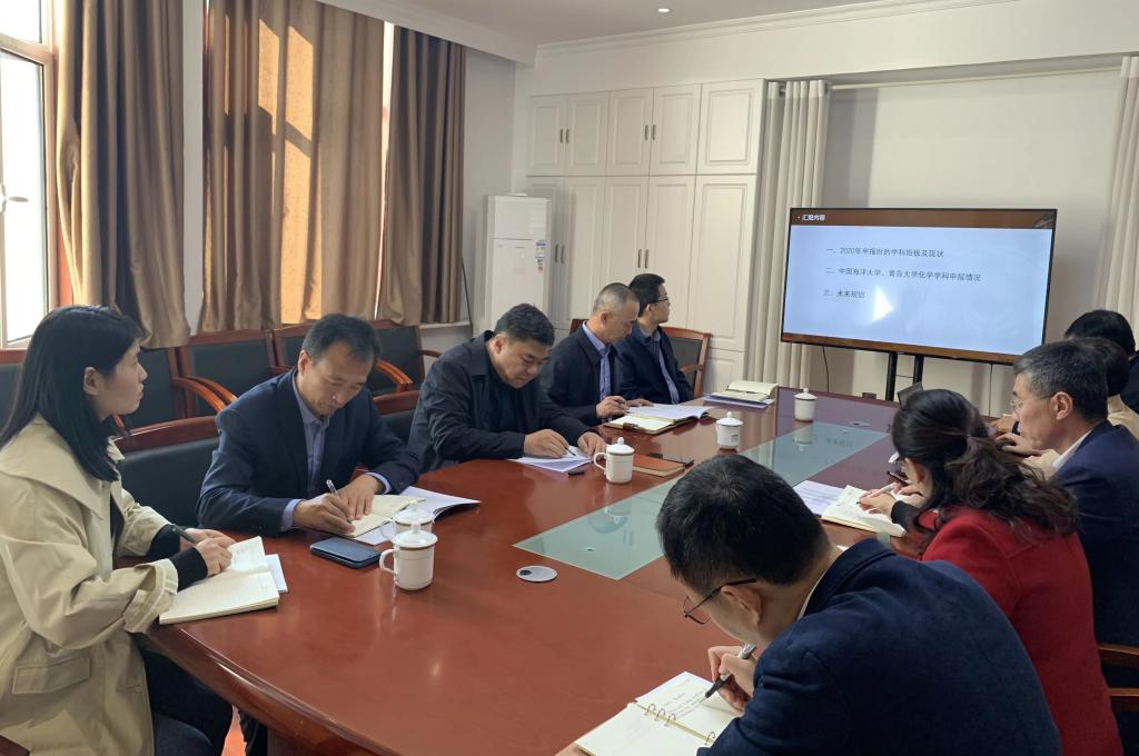 座谈中,化学与化工学院院长冯媛媛总结汇报了学院近年来学科建设的进展情况、与其他同类高校之间的差距,以及目前学院取得的突出成绩,并对今后学院的学科建设方案进行了汇报。化学与化工学院党委书记赵琪从搞好内修和加强外联两个方面汇报了学院扎实推进学科建设的工作思路。
