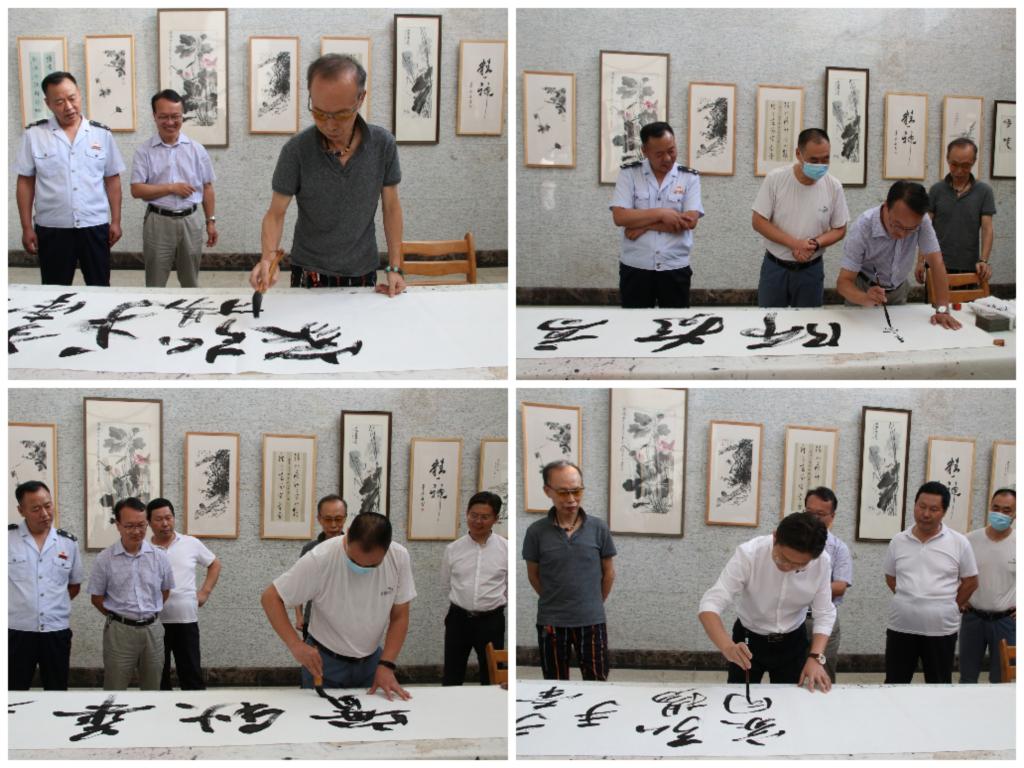 随后,党员代表来到图书馆参观“喜迎党代会,启航新征程”图书馆教师书画展,并与图书馆教师代表进行书法交流。图书馆高秀平老师、徐兰超老师与日照市政务服务中心副主任张洪友、党员代表杨磊现场进行书法展示,切磋技艺,并互赠作品。“政校手牵手,弘扬家国情”“春华秋实”“学高为师”,行云流水之间,共书家国情怀,在场的党员代表纷纷感叹中华优秀传统文化的独特魅力。