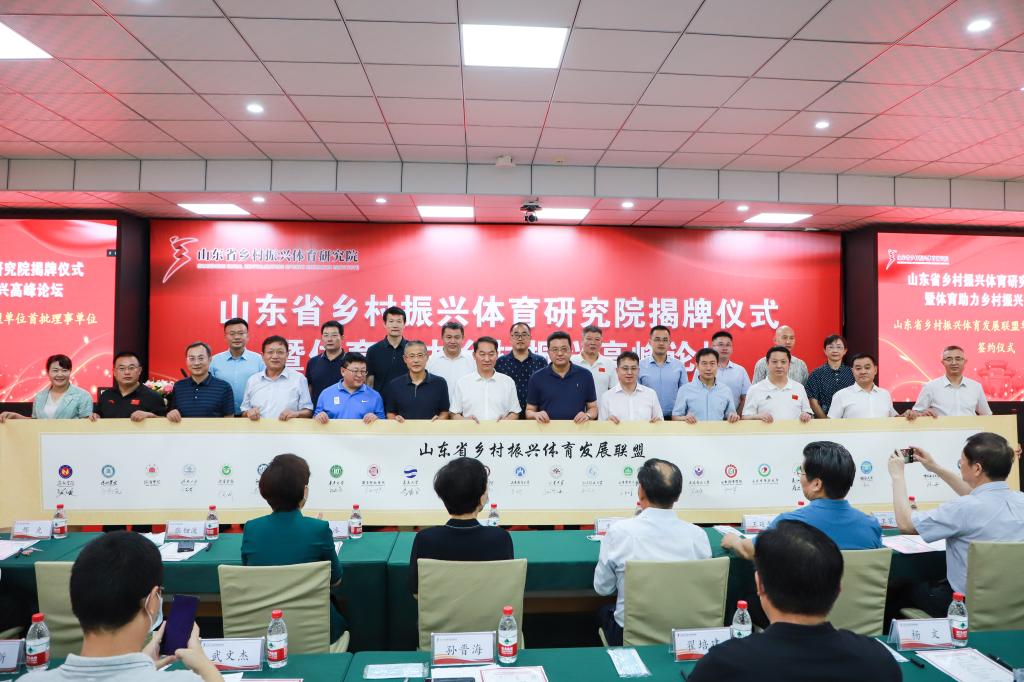 山东省乡村振兴体育发展联盟单位首批理事单位代表签署共建协议。
