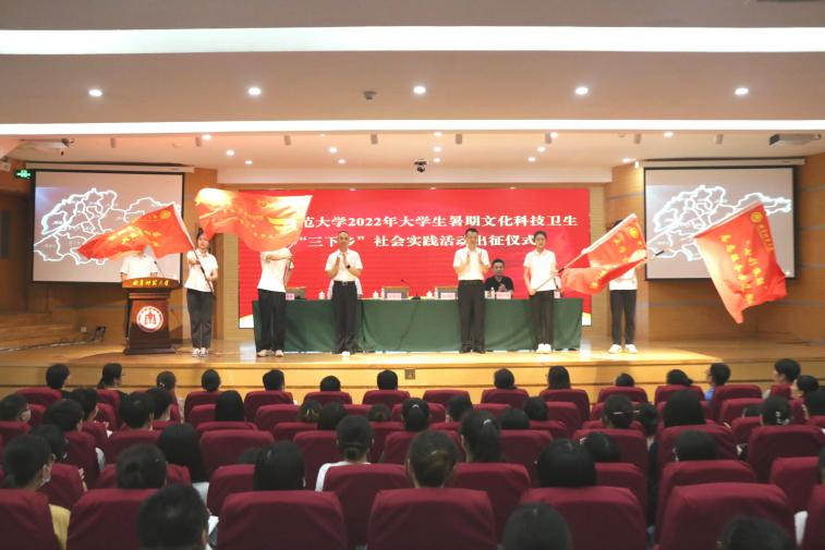 曲阜师大新闻中心讯 6月19日,为迎接党的二十大胜利召开,激励曲园学子积极参加暑期社会实践,全面开展实践安全教育,学校举行2022年大学生志愿者暑期文化科技卫生“三下乡”社会实践活动出征仪式。党委常委、副校长李兆祥出席活动并讲话,党委常委、宣传部部长张隆海出席活动,学生工作处、研究生处、保卫处、教务处相关负责人,各学院党委副书记、团委书记、社会实践团队指导教师和青年志愿者代表参加活动。出征仪式由校团委书记孔轶众主持。