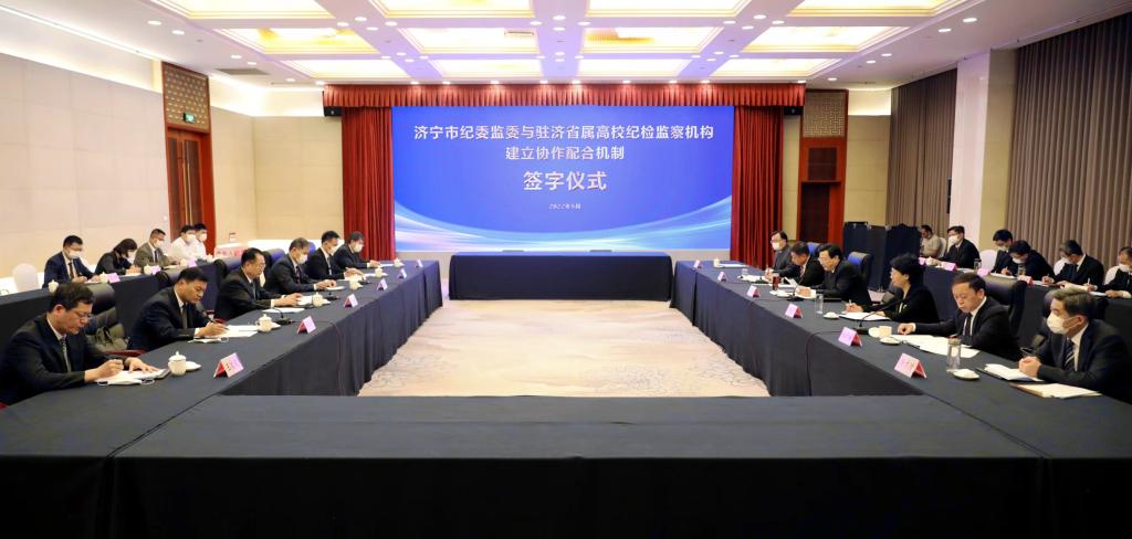 签字仪式上,济宁市纪委监委分别与三所高校纪委签署《济宁市纪委监委与驻济省属高校纪检监察机构开展协作配合的实施意见》。