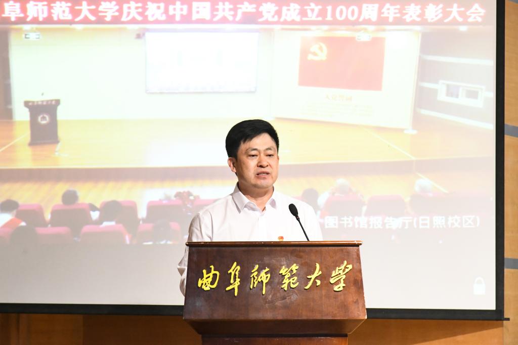 戚万学在讲话中首先代表学校党委,向全校各级党组织和全体党员,表示节日的祝贺和诚挚的问候!向所有荣获“光荣在党50年”纪念章的老党员同志们,向受到表彰的先进党组织和优秀个人,表示热烈的祝贺并致以崇高的敬意!戚万学指出,100年来,一代代中国共产党人,以力挽狂澜的担当和气魄,用鲜血和生命挺起了中华民族脊梁,建立了彪炳史册的不朽功勋,创造了一个又一个“中国奇迹”。党的十八大以来,以习近平同志为核心的党中央团结带领人民,开创了党和国家事业发展新局面,开启了实现“两个一百年”奋斗目标和中华民族伟大复兴中国梦的新征程。回望百年党史,我们深切感受到:没有共产党,就没有新中国;没有共产党的领导,就没有中华民族的伟大复兴。我们必须从百年党史中汲取信仰之力、信念之魂、信心之光,为实现中华民族伟大复兴的中国梦而不懈奋斗。