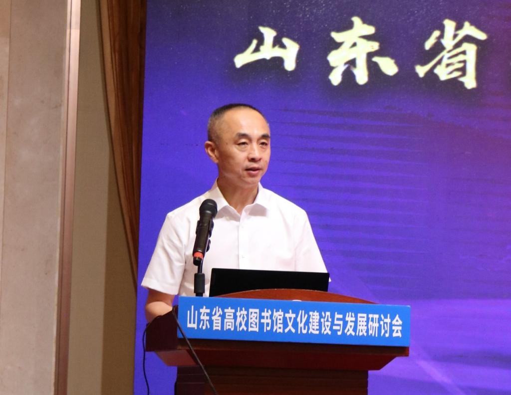 山东省高等学校图书情报工作委员会主任、山东大学图书馆馆长赵兴胜总结了近年来山东各高校在全省范围内开展的系列活动,指出本次会议立足于高校图书馆文化建设的创新与发展,与国家和山东省“十四五”规划中的文化建设任务高度契合,希望与会代表珍惜机会,积极向各位专家学者切磋交流,共同促进山东省高校图书馆事业快速发展。