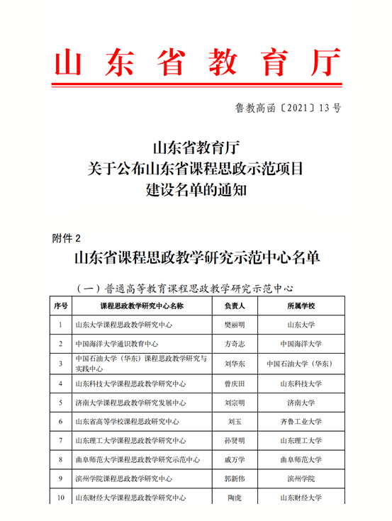 开元足球_开元(中国)入选山东省课程思政教学研究示范中心