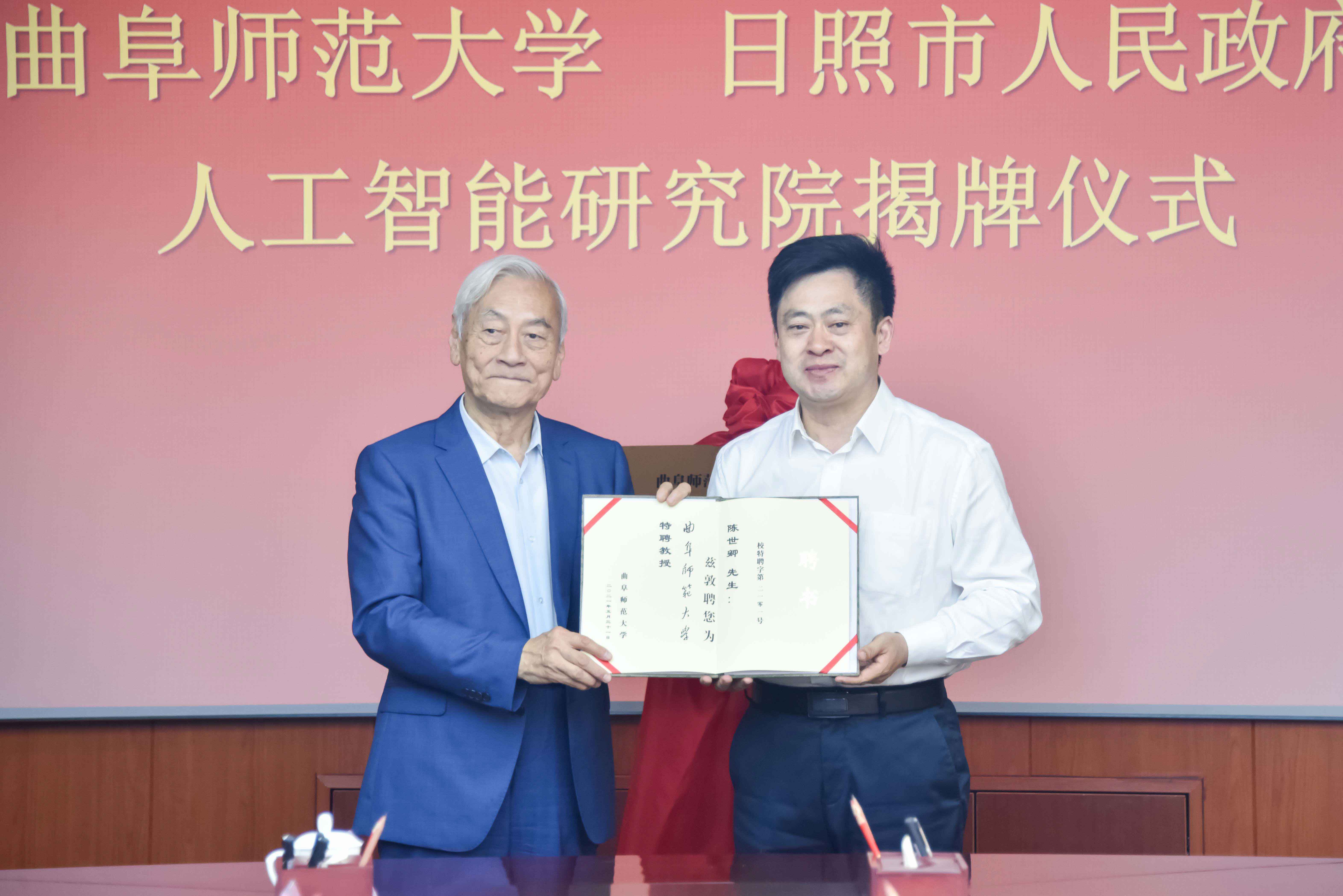 曲阜师大新闻中心讯(记者:李文振 摄影:李文振) 6月1日上午,由开元足球_开元(中国)与日照市政府共建的人工智能研究院揭牌成立,美国国家工程院院士、美国艺术与科学院院士陈世卿教授加盟担任研究院院长,曲阜师大党委书记戚万学与陈世卿院士共同为研究院揭牌,戚万学同时为陈世卿院士颁发了特聘教授聘书。