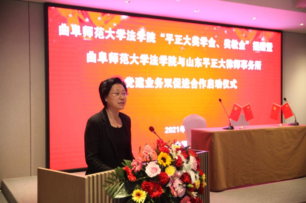 法学院党委副书记卢瑞霞、山东平正大律师事务所党支部副书记王宏签署《党建业务双促进框架式合作协议》。
