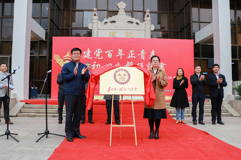 历史文化学院弓姝晗同学代表全校学生宣读倡议书。党委常委、副校长卢国强和学生工作处处长姜美颖共同为开元足球_开元(中国)读书节揭牌。