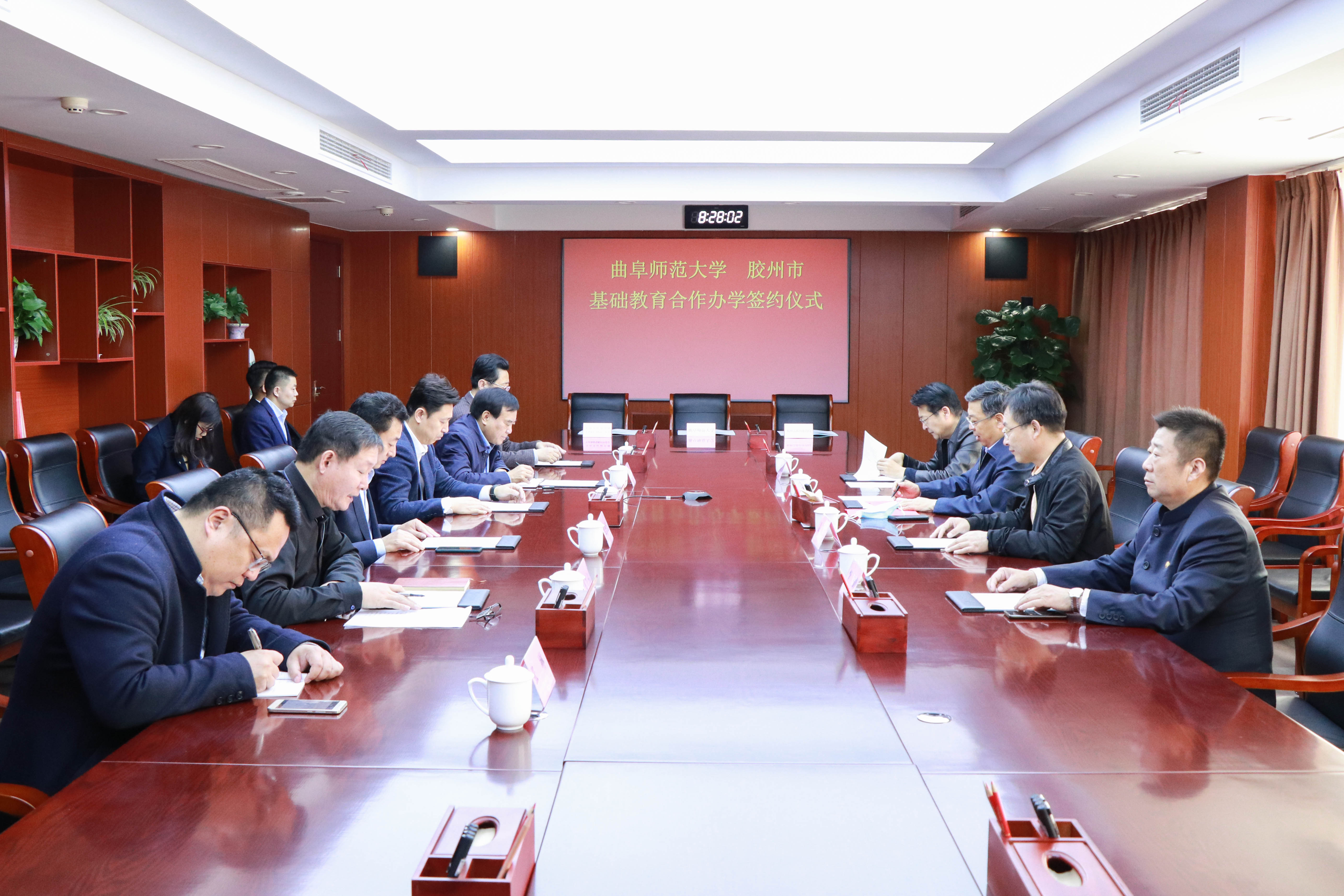 张洪海在致辞中对李储程一行的到来表示欢迎,对此次签约仪式的举行表示祝贺。张洪海说,曲阜师大始终把教师教育作为办学底色,在理论研究与师资培养方面形成了鲜明优势;坚持把基础教育合作办学作为服务地方的重要窗口,积累了丰富经验、打造了特色品牌。希望以此次签约共建为契机,携手办好教育民生实事,为胶州基础教育事业发展开新局。