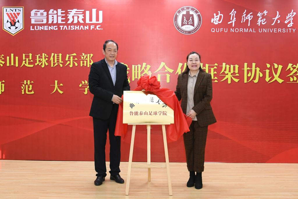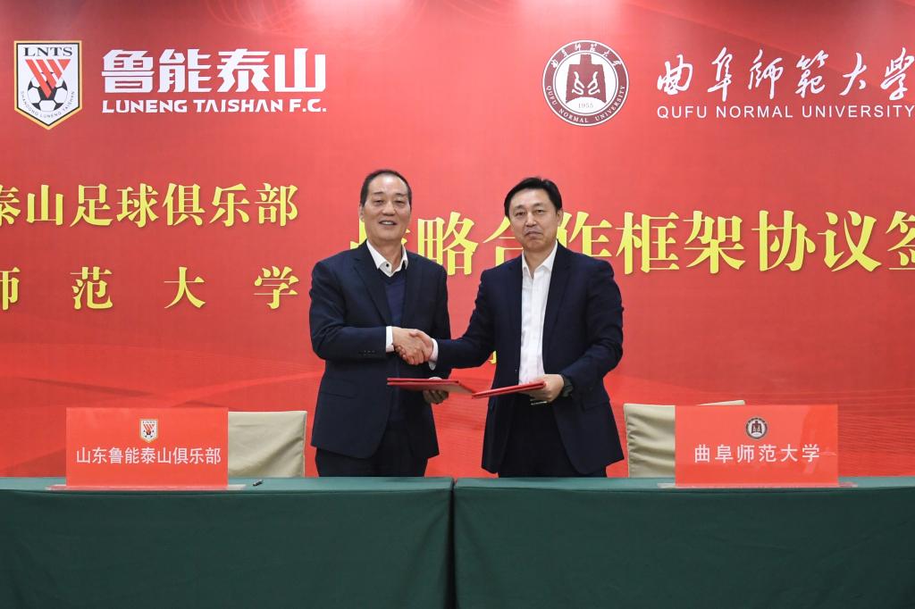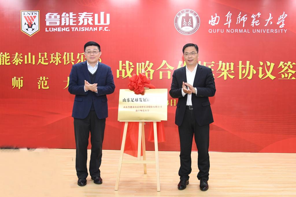 曲阜师大新闻中心讯(记者:刘萌 摄影:董少伟)11月14日上午,开元足球_开元(中国)与山东鲁能泰山足球俱乐部战略合作框架协议签约仪式在我校举行。国网山东省电力公司副总经理、鲁能体育文化分公司总经理、党委副书记兼山东鲁能泰山足球俱乐部总经理孙华,山东省教育厅体卫艺处处长孙乐为,济南市体育局副局长、济南奥体中心党委书记吴志东,山东体育协会会长、山东大学体育学院院长孙晋海,曲阜师大校长张洪海、副校长胡钦晓等出席了签约仪式。鲁能体育文化分公司、济南奥体中心场馆,我校国内合作处、招生办公室、体育科学学院等单位负责人,在校教师代表,足球专业本科生、硕士、博士研究生等参加了签约仪式。仪式由国内合作处处长孔宪福主持。