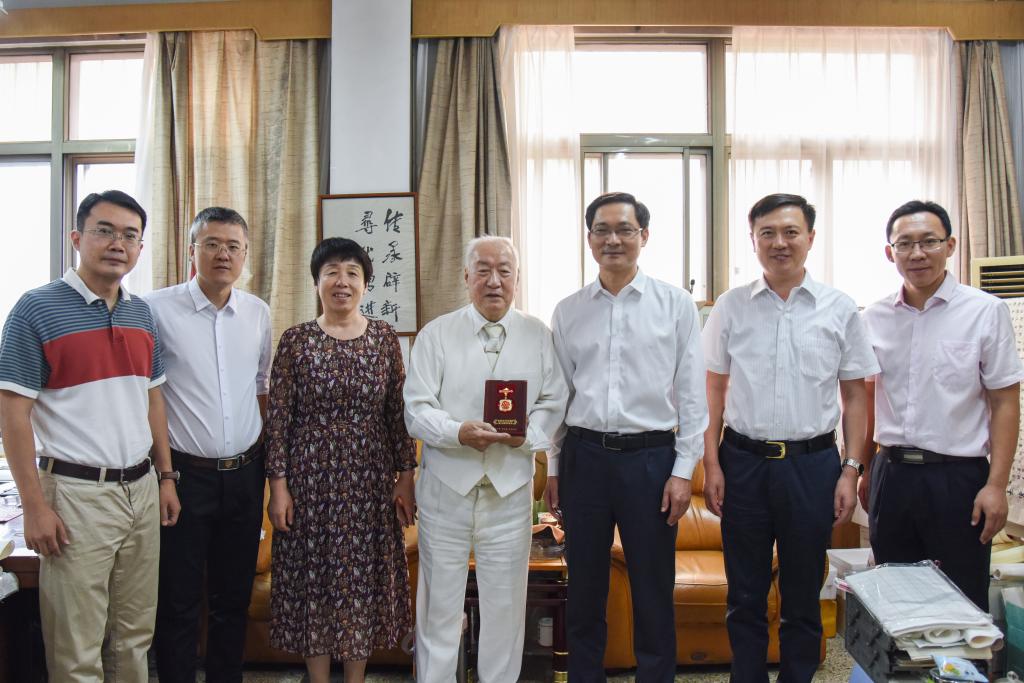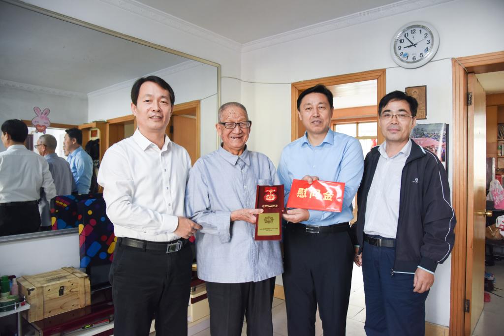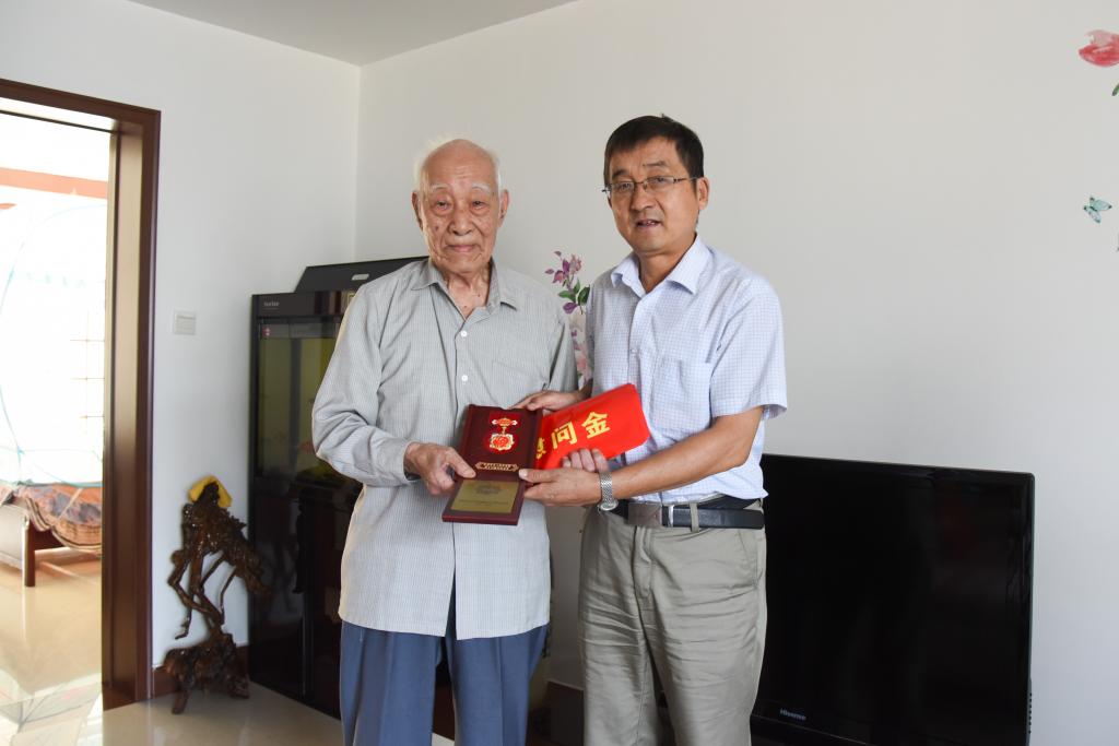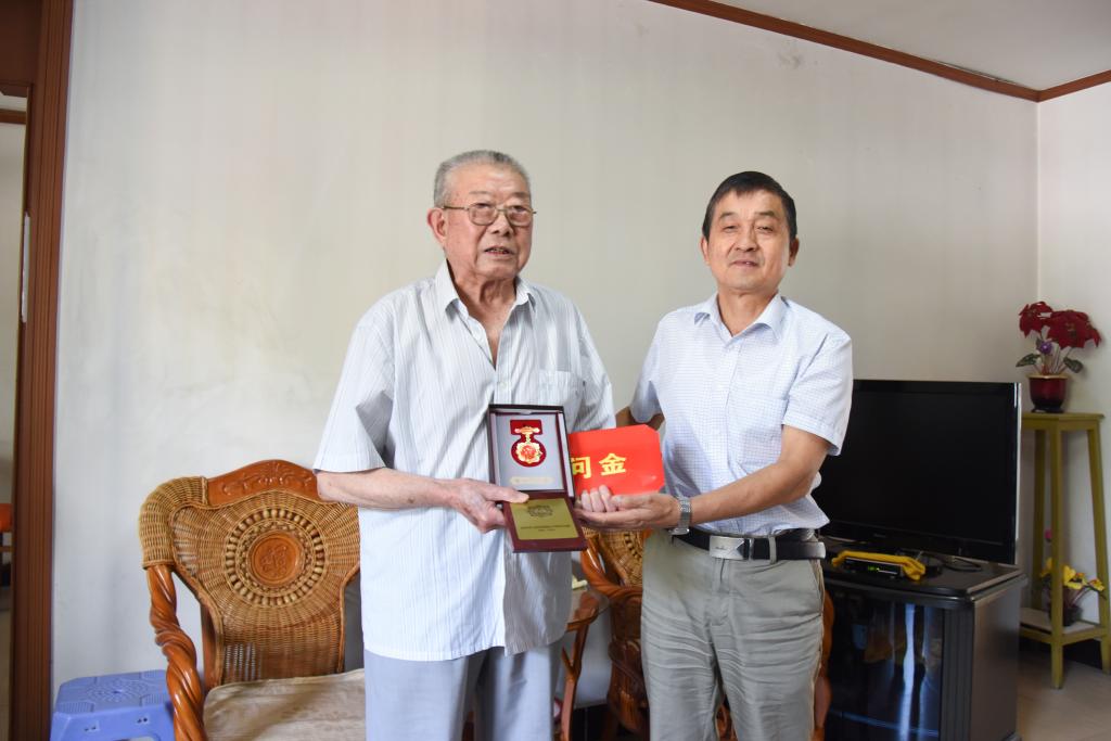 “感谢您作出的贡献,这是来自党和国家的荣誉!”每到一位老同志家中,学校领导都亲自为老同志打开纪念章,向他们致以崇高敬意。“庆祝中华人民共和国成立70周年”纪念章由中共中央、国务院、中央军委颁发,颁发对象为新中国成立前参加革命工作的老同志、新中国成立后获得国家级表彰奖励荣誉的人员等。