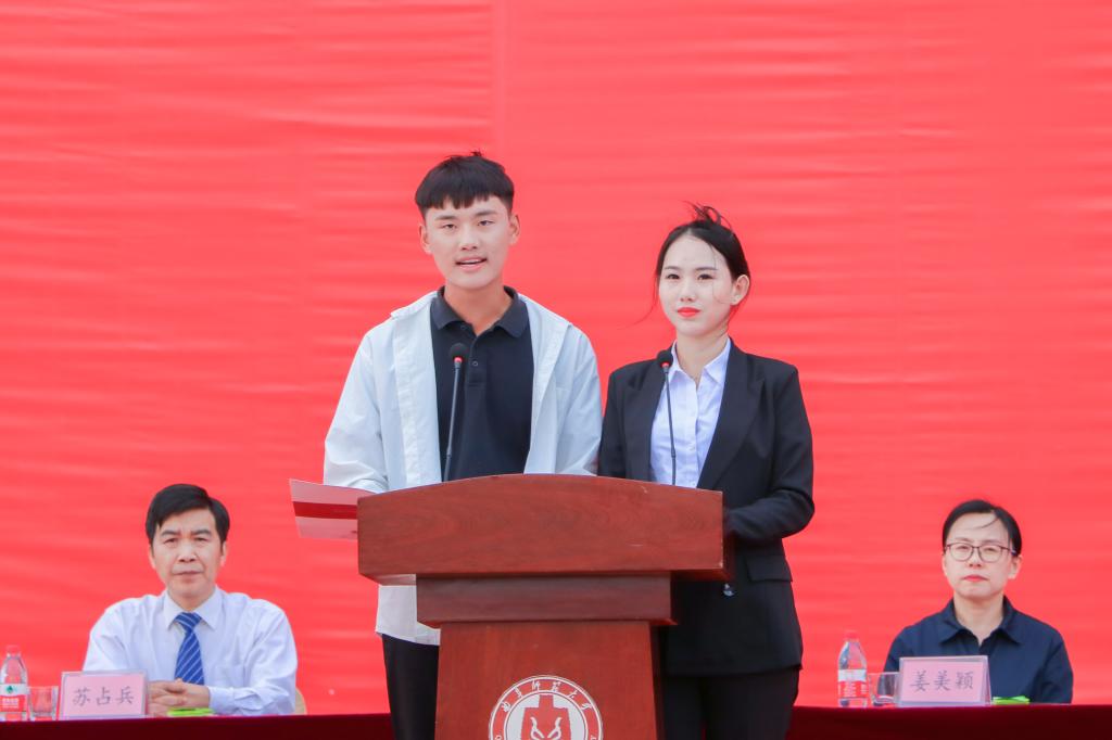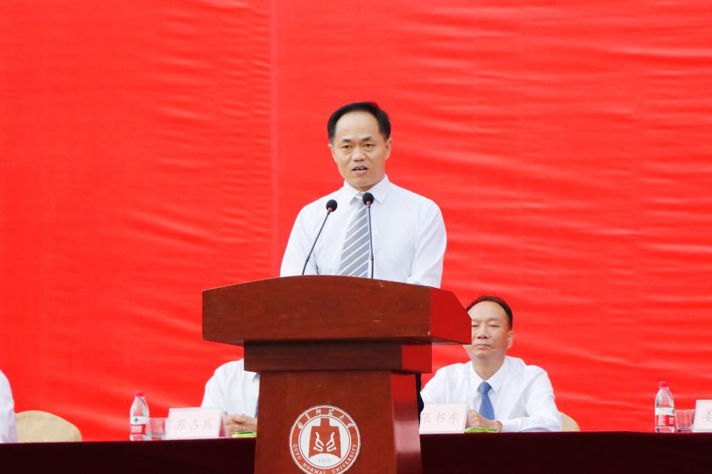 我校杰出校友代表、四川大学徐泽水教授在典礼上致辞。他对新同学即将开启新征程表示祝贺,对母校的辛勤培养表示深深感谢,感恩母校交给他解决问题和困难的“钥匙”,与大家分享了人生各个阶段的求学经历和成长感悟。他表示,理想和抱负是指路灯塔,勤奋与坚持是决胜的战舰。他希望大家珍惜青春年华,充分利用大学各种资源,尽快找准人生努力方向,坚守初心,奋力拼搏,锐意进取,以实际行动实现自己的光荣与梦想,为母校争光。