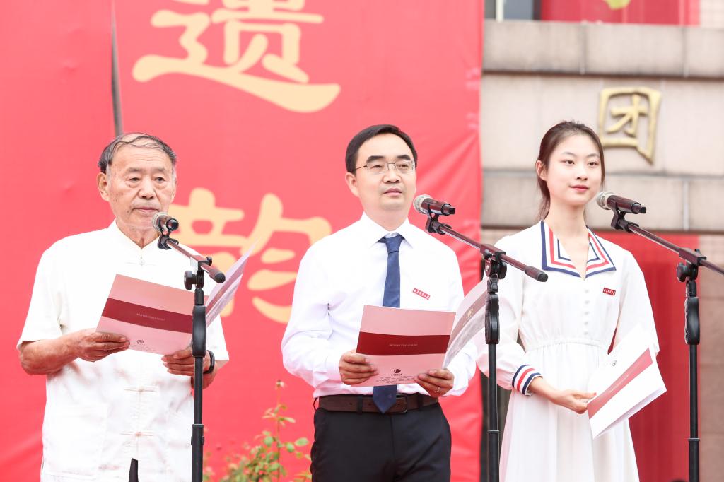 儒学专家骆承烈教授、泰山学者孙宝教授、三好学生标兵崔芳博同学领诵儒家经典
