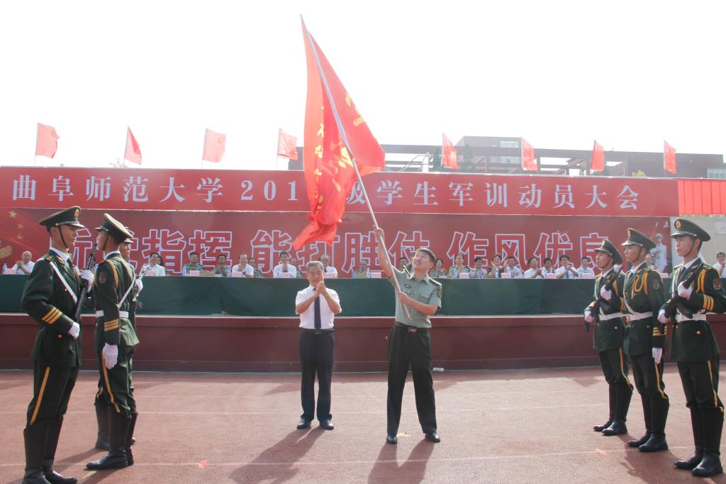 9月10日,我校分别于日照校区西操场、曲阜校区南操场举行了2019级学生军训动员大会。出席动员大会的领导有:武警济宁支队副参谋长储指南,日照武警支队副参谋长吴关,我校党委领导班子成员扈庆学、王继锁、杨冰、徐思生、张隆海。学校各相关部处及学院主要负责人在主席台前就座。动员大会由学生工作处(武装部)处(部)长姜美颖主持。