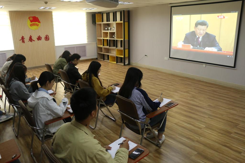 4月30日上午10时30分,纪念五四运动100周年大会在北京人民大会堂隆重举行,中共中央总书记、国家主席、中央军委主席习近平出席大会并发表重要讲话。我校各级团组织组织广大团员青年收看了大会盛况,认真学习领会习近平总书记在大会上的重要讲话精神。