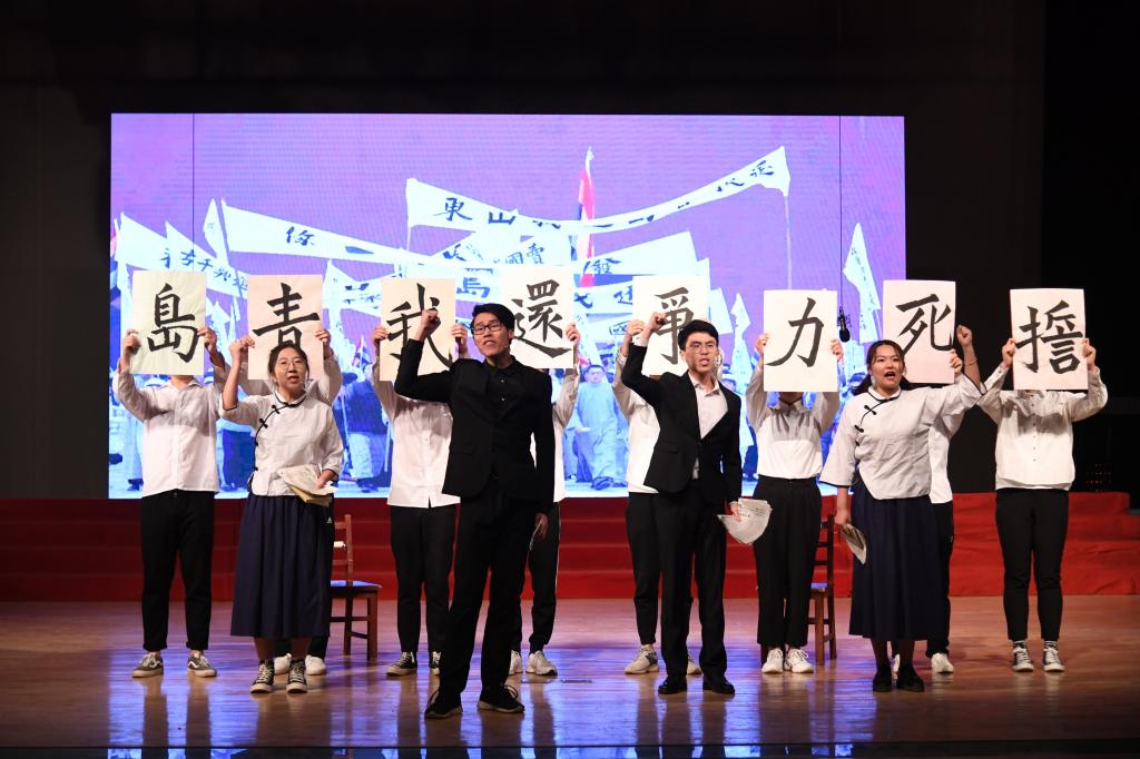 会演以爷孙两辈人对五四运动的回忆为线索展开,各学院用歌曲、舞蹈、短剧、诗歌等形式展现了青年人朝气蓬勃的精神风貌,表达了发扬五四精神、投身祖国建设事业的坚定决心。身着各行业服装的学子唱响《我和我的祖国》,当熟悉的旋律响起,全场观众挥舞手臂齐声合唱,唱出了当代青年对祖国深深的眷恋与热爱;《青年志·五四魂》用舞台剧重现了当年五四运动时期青年学生义愤填膺、振臂疾呼、舍身为国的场景,激励当代中国青年铭记历史,不忘青年志、五四魂;《巍巍军魂万古存》更是将青年战士的铮铮铁骨演绎得淋漓尽致;《血泪祭·无名花》则巧妙运用舞蹈,生动地还原前线医疗兵救治伤员的情形;《复兴冀望待青年》回顾了祖国近年来取得的伟大成就,唤起青年一代“心怀天下、先人后己”的家国情怀;《春蚕烛炬创曲园》讲述了曲园人辛勤耕耘的故事,呼吁曲园所有犁牛子、追梦人共同携手、同舟共济,开创学校更好美好的未来;《正青春,期未来》则通过“五四”时期与当代大学生穿越时空的对话呈现中国百年来的沧桑巨变,引发青年思考,更具有代入感和吸引力。