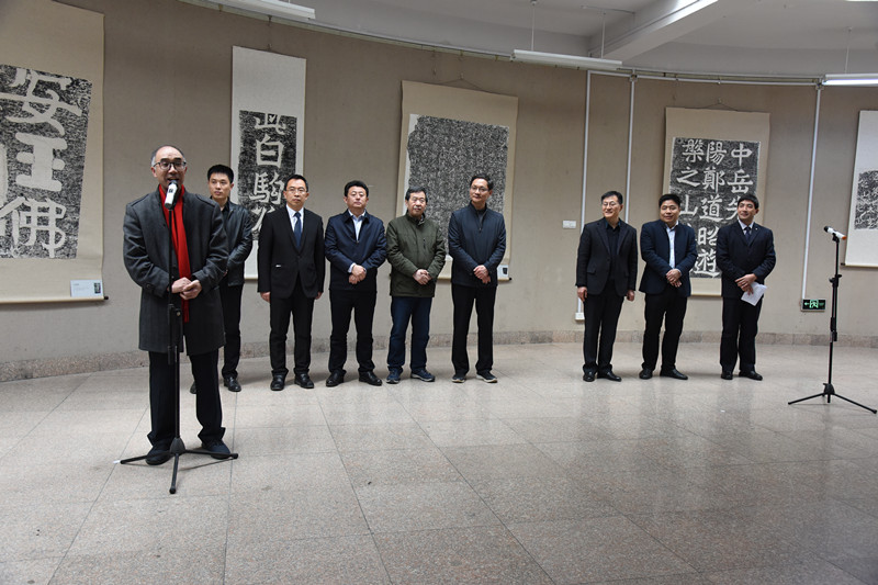 为彰显传统文化魅力,庆祝新中国成立70周年,4月12日上午,我校举行“庆祝新中国成立70周年山东古代石刻拓片展”开展仪式,本次活动由书法学院与山东省石刻艺术博物馆联合主办,副校长夏云杰,山东省石刻艺术博物馆研究馆员、副馆长杨爱国,山东省石刻艺术博物馆研究员、山东省书法家协会副主席赖非等出席了作品展,党委宣传部、书法学院、历史文化学院等相关单位负责人参加了活动,书法学院部分师生代表现场观展,夏云杰、杨爱国在作品展上分别作了致辞。