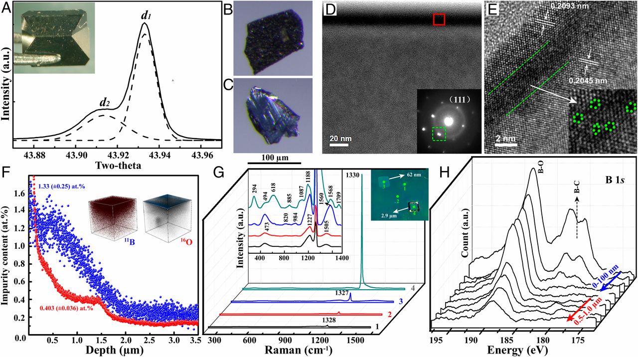 此前,很多研究都设法通过在金刚石结构中掺杂氮、硫、磷元素来制备n型半导体。与此不同,刘晓兵教授带领团队发现了通过硼、氧共同掺杂来调节金刚石导电性能的新路径,利用高温高压合成技术实现了n型多元共掺杂金刚石单晶的制备。该团队研究发现,在高温高压条件下,通过调节金刚石晶体中硼、氧元素的比例,可以实现p型向n型电导转变,制备出n型金刚石半导体。而且,与其他研究相比,这一方法能将n型金刚石半导体的载流子浓度提高近100倍,更加有助于推进金刚石半导体的实践应用。