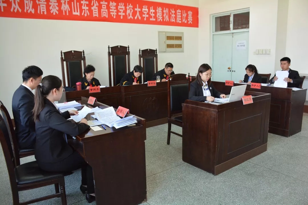 114日,四分之一决赛中,我校辩护方选手以压倒性的优势战胜山东科技大学代表队;半决赛中,我校代表队遭遇东道主聊城大学代表队,队员仍然表现出高昂的士气,展现了前所未有的精彩庭审辩论,最终仅以三分之差惜败。比赛过程中,我校选手融事实与法律为一体,辩法论理,表现得体,沉着冷静。赢得现场观众一致好评。