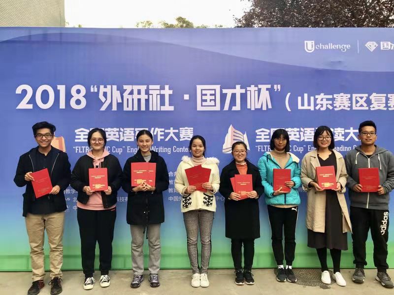 11月3日至4日,2018“外研社杯”全国大学生英语挑战赛山东赛区比赛在济南和烟台举行,此次比赛包括阅读大赛、写作大赛和演讲大赛三项赛事。我校13名学子在衣进韬、孙海珊、满虎、徐欣、秦艳五位教师的带领下参加了本次比赛,荣获一等奖2项、二等奖3项、三等奖5项。