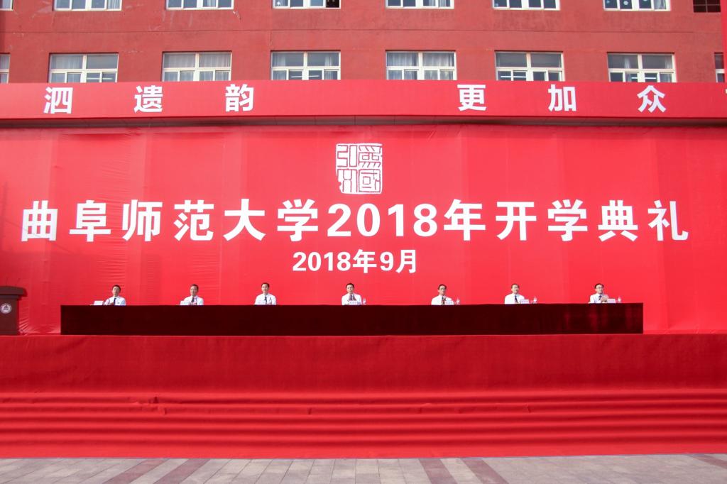 党委书记戚万学在典礼上致开学训词。戚万学指出,六十三年前的首次开学典礼上,“犹有洙泗遗韵,更加众志成城”的题词吹响了圣地学府远航的号角。六十三年后的今天,正逢习近平总书记视察曲阜五周年、全国教育大会刚刚胜利闭幕,曲园人在开学典礼上重温这十二个字的“创校宣言”,就是号召全校师生不忘初心、戮力同心、砥砺奋进,担负起孔子家乡百年学府建设的历史使命。他希望,曲园的每一位教师都应当好“传道”大先生,厚植文行忠信、潜心教书育人,守住三尺讲台,做好“四有”老师,传师道、树师风、守师魂,诲人不倦育英才;曲园的每一位同学都要深研“春秋”大学问,焚膏油以继晷,恒兀兀以穷年,学如不及、见善如不及,增知识、长见识、修德行,学而不厌成栋梁;全校所有党员干部均须融入“复兴”大时代,胸怀理想、心系师生,居之无倦、行之以忠,办实事、做好事、解难事,为政以德勇担当。“中华圣地,兹有斯文;大成气象,由此发轫。” 戚万学在训词中号召大家以尼山测峻、大海量深之精神,矢志为国弘文,朝着一流大学大步前进!