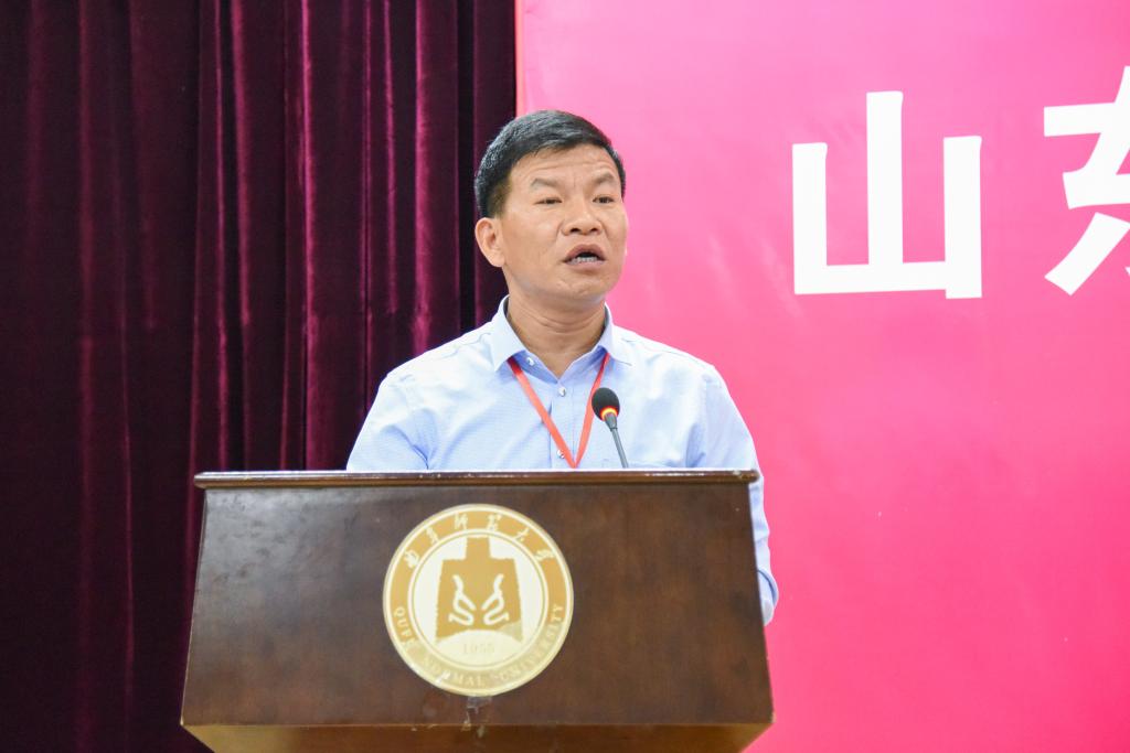 冯冲在开班仪式上作了致辞,他对各位领导与学员的到来表示热烈欢迎和衷心感谢。他表示,我校因孔子而生,以文化而盛,与时代偕行,始终将“为国弘文”的文化自觉和文化自信贯穿于63年的办学历程中。习近平总书记视察曲阜发表重要讲话以来,学校自觉担当文化复兴的神圣使命,将“文化立校”确立为建设孔子家乡百年学府的重要使命,把建设具有卓越文化追求、独特文化标签、突出文化优势的高水平大学作为学校办学目标。他指出,我校在优秀传统文化方面学科优势明显,师资力量雄厚。山东省教师优秀传统文化教育基地设在我校,是对我校的充分信任和鼓励。我校一定认真落实省教育厅的相关要求,高质量完成全省优秀传统文化骨干教师培训任务。