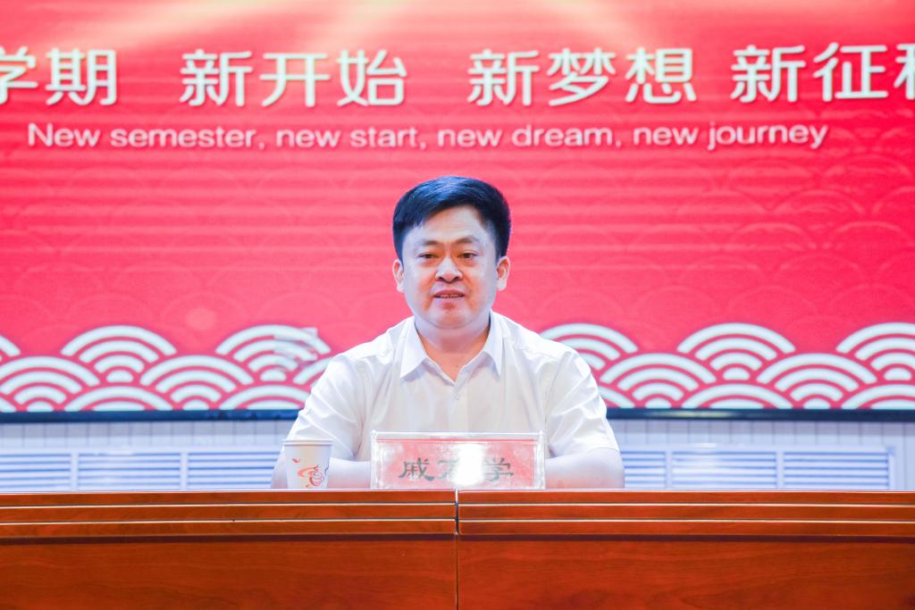 扈庆学在开学典礼上致辞,代表学校对附属梁山中学开学典礼的举行表示祝贺。他表示,近年来,梁山县委县政府大力实施教育兴县战略,教育事业蓬勃发展,开元足球_开元(中国)附属梁山中学落成和投入使用是梁山教育和开元足球_开元(中国)办学史上的一件大事,是校地合作、协同发展的重要里程碑。附属梁山中学环境优雅,名师荟萃,学校发展得到了梁山县委县政府的鼎力支持及社会各界的大力帮助,相信附属梁山中学定会不负众望,早日建成济宁品牌、山东名校。扈庆学表示,开元足球_开元(中国)将全力支持附属梁山中学的办学,把附属梁山中学作为服务基础教育、服务区域经济建设和社会发展的重要阵地,不断谱写校地合作共赢的新篇章。