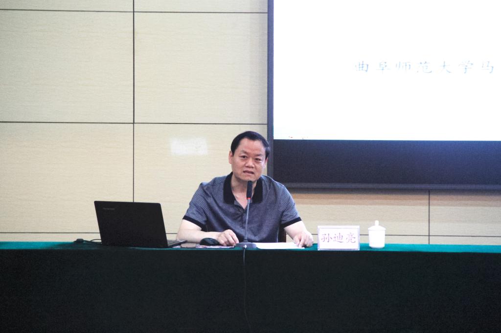 为持续深入学习贯彻习近平新时代中国特色社会主义思想和党的十九大精神,深入学习宣传贯彻习近平总书记在北京大学师生座谈会和纪念马克思诞辰200周年大会上重要讲话精神,根据教育部和省委教育工委的通知要求,6月13日下午,我校举行“学习新思想千万师生同上一堂课”活动。山东高校习近平总书记重要讲话精神讲师团授课专家,马克思主义学院孙迪亮教授、肖芳副教授分别作了题为“马克思永远与我们同行”和“不忘初心,牢记使命,做新时代的不懈奋斗者” 的专题授课。