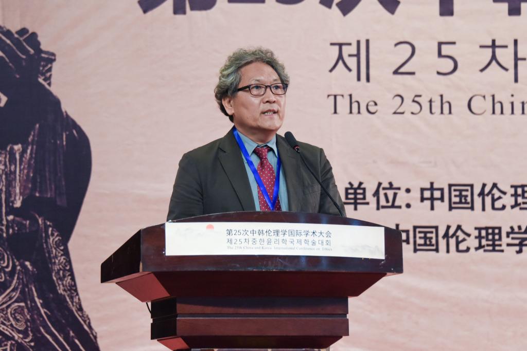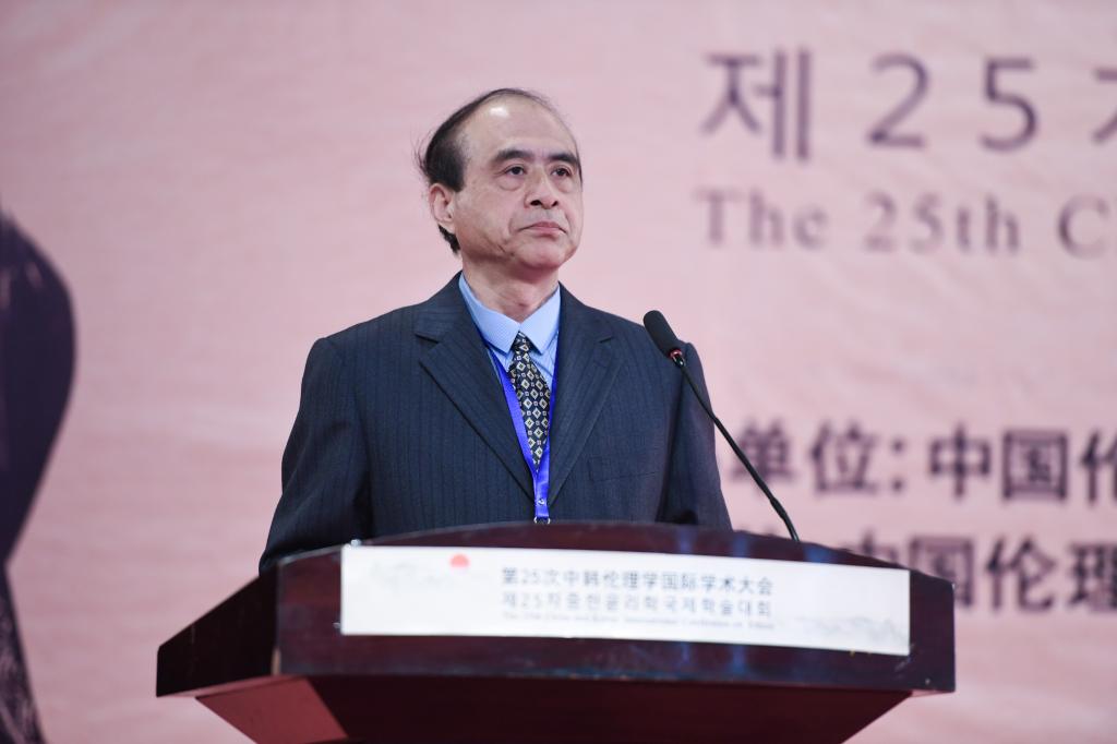 韩国伦理学会原会长、韩国交通大学洪荣熹教授主持大会主旨报告环节