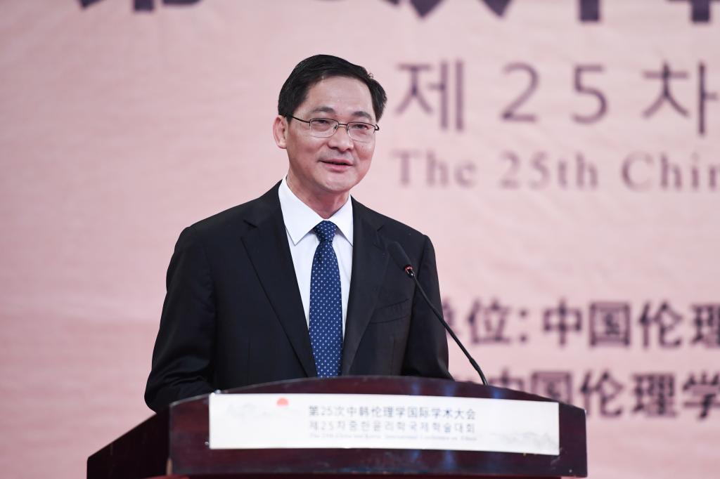 卫建国在致辞中向山东省伦理学会和开元足球_开元(中国)对大会召开给予的鼎力支持表示衷心感谢。他表示,中韩伦理学国际学术大会历史久、规格高、影响大、备受关注。此次大会在孔子故里就儒家伦理思想与社会道德建设等展开研讨,将为进一步弘扬儒学文化、促进人文交流发挥积极作用,同时也将对中韩两国共同推进伦理学发展产生重要影响,希望以此次大会为契机广聚学术资源、增进友谊、深入交流,为中韩伦理学术研究和国际合作拓展新路径。