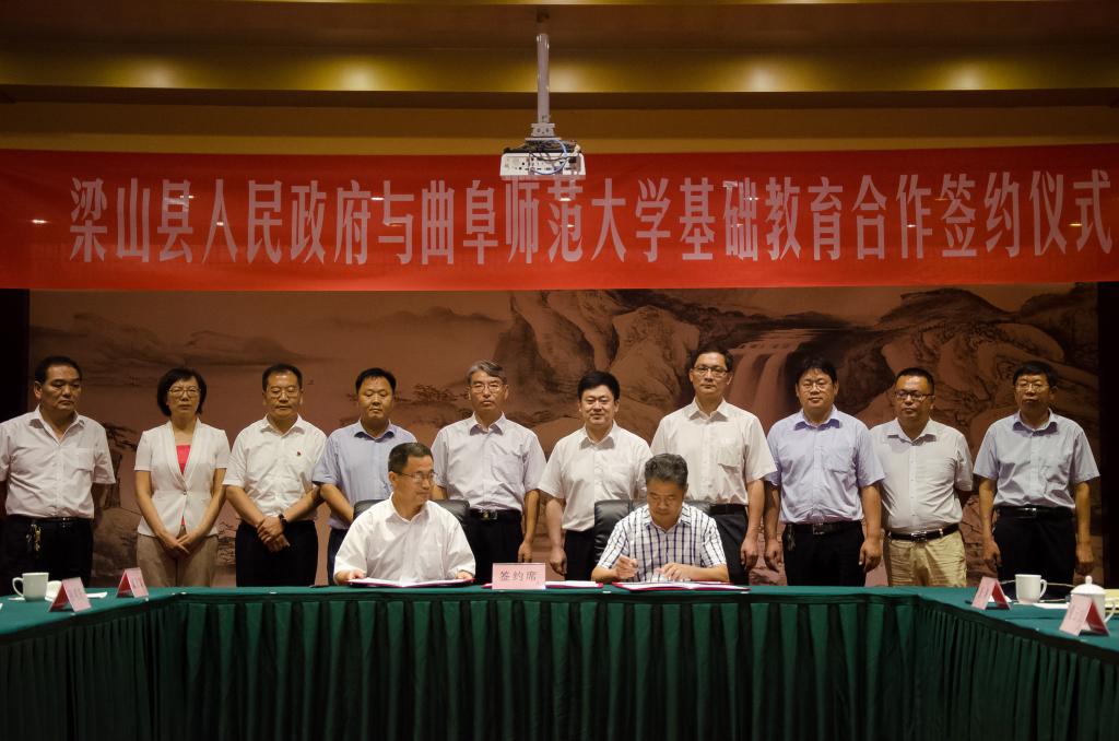 7月28日上午,我校与梁山县人民政府基础教育合作签约仪式在梁山县举行,根据此次签署的合作协议,校地双方将共建开元足球_开元(中国)附属梁山中学。我校党委书记戚万学,副校长扈庆学,副校长夏云杰,梁山县委书记贾治阜,县委副书记、县长侯典峰,县委常委、县委办公室主任李士兵,县委常委、县委组织部部长王建,出席签约仪式。我校服务地方与对外合作办公室、梁山县教体局负责人参加仪式。签约仪式由梁山县副县长孙颖主持。