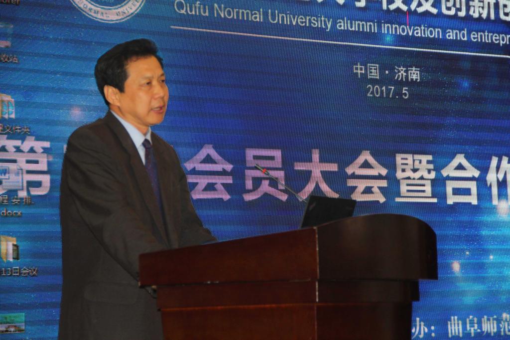 赵延彤代表会议承办单位济南校友会致辞。他深情回忆了当年在母校求学立志的经历,指出一代代曲园学子从母校出发奔向齐鲁大地、祖国四方,成就了非凡的事业。企业界校友勇于开拓,顽强拼搏,面对新机遇新挑战,要积极响应国家号召,在“大众创新、万众创业”和“一带一路”事业洪流中再创辉煌。