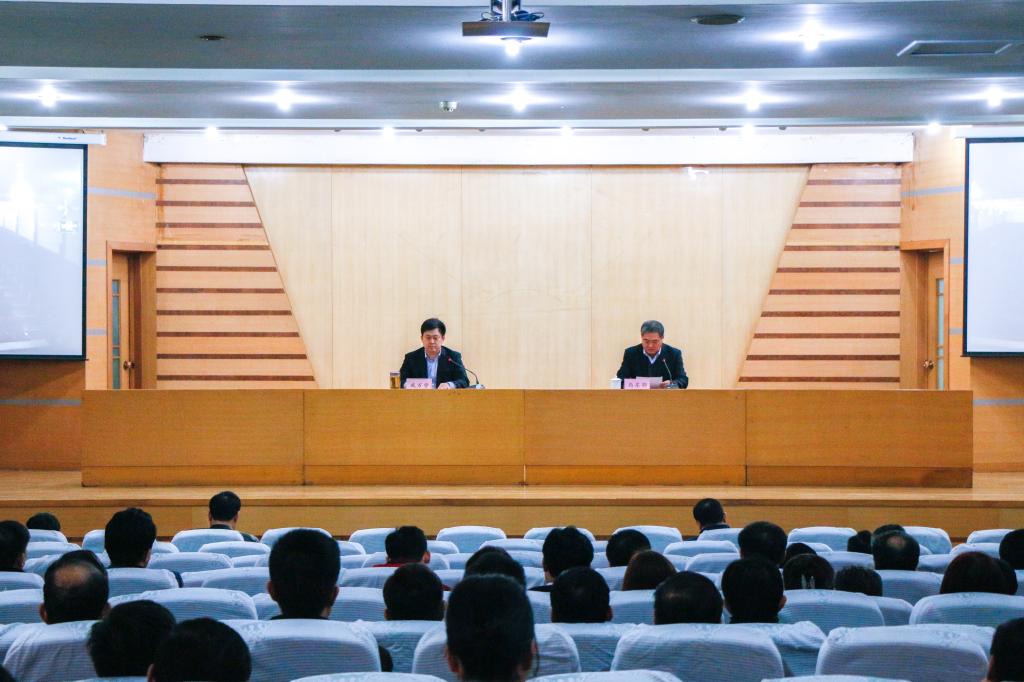 12月1日下午,我校召开党的十八届六中全会精神宣讲会,党委书记戚万学为全校科级以上干部作专题宣讲报告。副校长马东骅主持了会议。