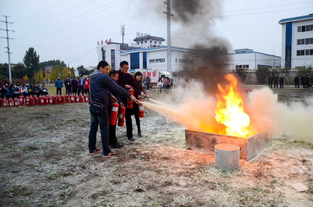 消防演练活动由消防车车操表演、灭火器使用讲解和灭火演练三部分组成。首先进行消防车车操表演,消防官兵听到警铃后身迅速下车,从器材箱拿出消防水枪和水带,打水带、接水口、连水枪,快速喷射水柱。随后,曲阜市消防大队参谋张甲坤向师生详细地讲解灭火器使用方法及注意事项。最后消防演练实战环节,师生代表齐上阵,在专业人员的指导下,亲身体验灭火器的实际操作。