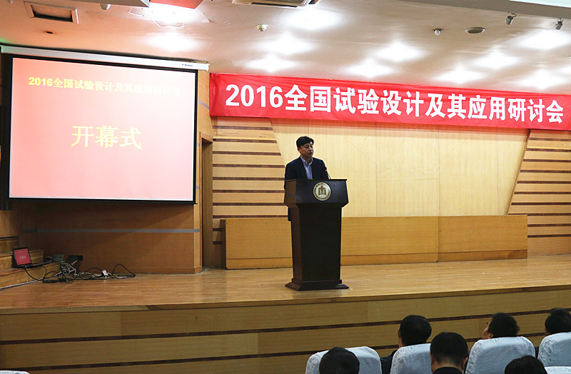 11月5日上午,由中国现场统计研究会试验设计分会主办,我校统计学院承办的“2016全国试验设计及其应用研讨会”在孔子会堂隆重召开,来自海内外各地高校、科研院所的约120名专家、学者和研究生参加了此次研讨会。我校副校长张洪海教授,统计学院院长尹传存教授,数学与统计学院党委书记王方立,科技处副处长刘建新,统计学院教学科研负责人赵胜利教授,试验设计分会理事长、北京大学博士生导师艾明要教授,副理事长、南开大学博士生导师刘民千教授,副理事长、河南师范大学庞善起教授,副理事长、华中师范大学党委副书记覃红教授,副理事长、上海师范大学博士生导师岳荣先教授,副理事长、华东师范大学 张应山教授,秘书长、广州大学博士生导师张崇岐教授、美国宾州州立大学Dennis K.J. Lin 教授等出席开幕式。开幕式由张崇岐教授主持。