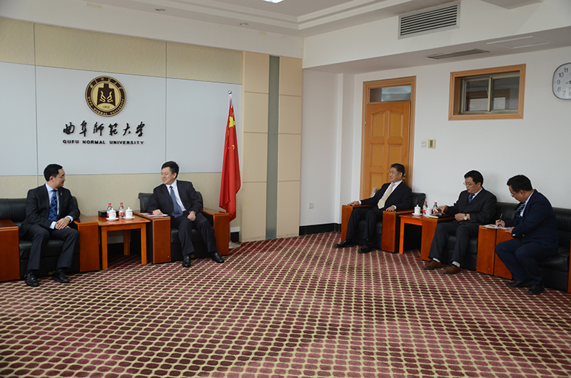 会见结束后,杨健博士一行在校长戚万学、副校长马东骅、副校长扈庆学的陪同下,参观了我校书法学院、国学院和葫芦文化博物馆,对我校鲜明的办学特色和深厚的文化积淀给予高度评价。