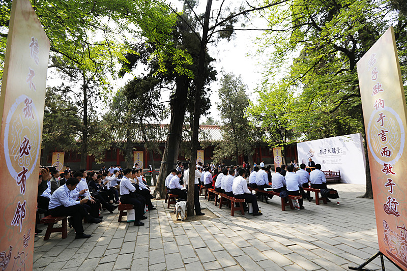 戚万学在致辞中表示,曲阜师大地处儒家文化发源地,是一所因孔子而生的大学,自建校起就承担着传承和弘扬孔子儒学的文化使命,传承创新中华优秀传统文化是贯穿学校60年办学历程的灵魂和血脉。习总书记“曲阜讲话”之后,更加激发了学校对中华文化的自觉、自信和责任担当。学校顺天时、得地利、应人和,将“文化立校”确立为建设孔子家乡百年学府的重要战略,勇敢承担起文化复兴的神圣使命。“孔子大讲堂”是曲阜师大推进“文化立校”战略而实施的一项重大举措,学校将搭建一个面向世界文明的思想平台,举办一系列碰撞思想、陶冶性情、浸润心灵的学术盛会,展开学术争鸣,发出中国学者的曲阜声音,彰显儒学国际话语权,提升优秀传统文化传承发展示范区的影响力,打造曲阜、山东乃至全国的文化名片。