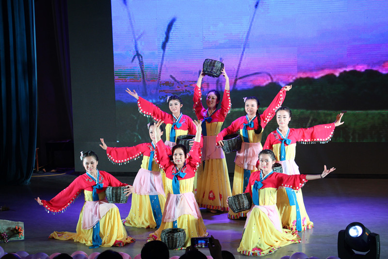 随后,充满古典韵味的古筝演奏令观众陶醉不已,欢快热烈的舞蹈《盛世欢歌》带起了全场的气氛,钢琴与小提琴的天籁合作引人入胜,历届外文歌曲大赛优秀选手的外文歌联唱展现了翻译学子的青春活力,师生合作的朝鲜族舞蹈《桔梗谣》、日本舞和拉丁舞表演充满了异域风情,外籍教师和国内老师分别献上的歌唱表演则获得观众席阵阵掌声。除了歌舞表演,还有搞笑幽默的日文话剧《还珠格格》,精彩纷呈、还原度极高的《海绵宝宝》配音表演。晚会在大家共同演唱的《Good time》中落下帷幕。