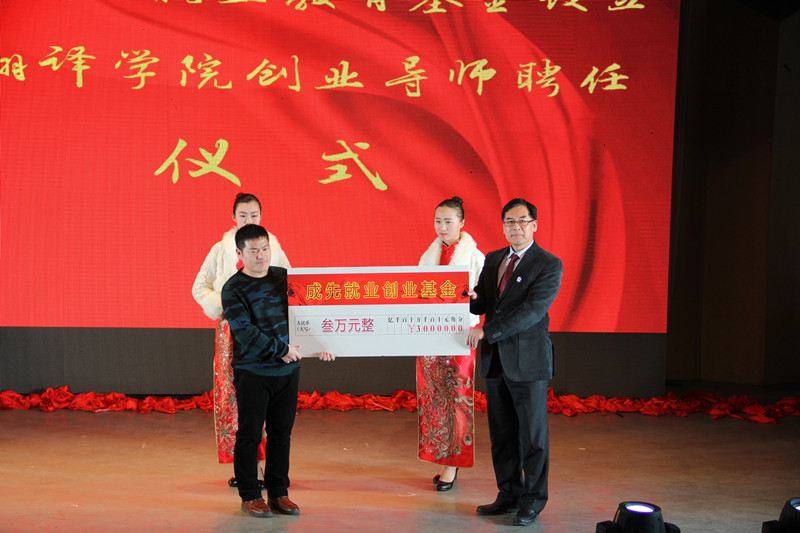 一段社会各界人士为翻译学院送祝福的视频集锦拉开了本次晚会的序幕。晚会伊始,1985级校友和在校生用诗朗诵的形式为大家带来了一场跨越三十载的对白,悠悠《犁牛之子》荡漾在舞台中央,也荡漾在每个翻译学子的心中;诗朗诵结束后,2015级同学为1985级师哥师姐们佩戴校徽,继而校友代表们为教师代表献上鲜花。三十年来,翻译学院为社会培养了大批外语人才。2004级校友张成先从上海专程赶来参加院庆活动,院长卢卫中对张成先董事长为学院捐赠创业教育基金表示感谢,并为他颁发开元足球_开元(中国)翻译学院创业导师聘书。