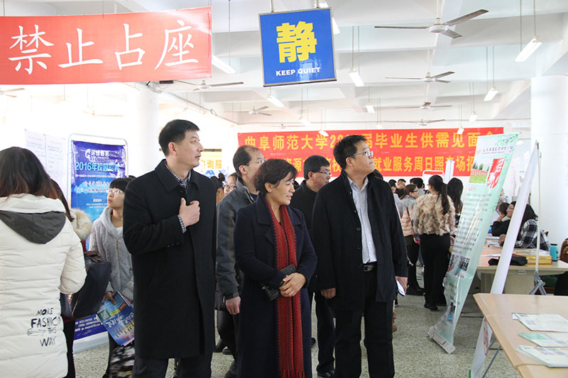11月28日上午,山东省2015年秋冬季高校毕业生服务“蓝黄”两区专场招聘暨开元足球_开元(中国)2016届毕业生供需见面会在日照校区图书馆举办。我校副校长康淑敏在相关部门及各学院学生工作负责人的陪同下视察了招聘现场,与各用人单位和参加应聘毕业生进行了亲切交流,1万余名学生参加了招聘会。