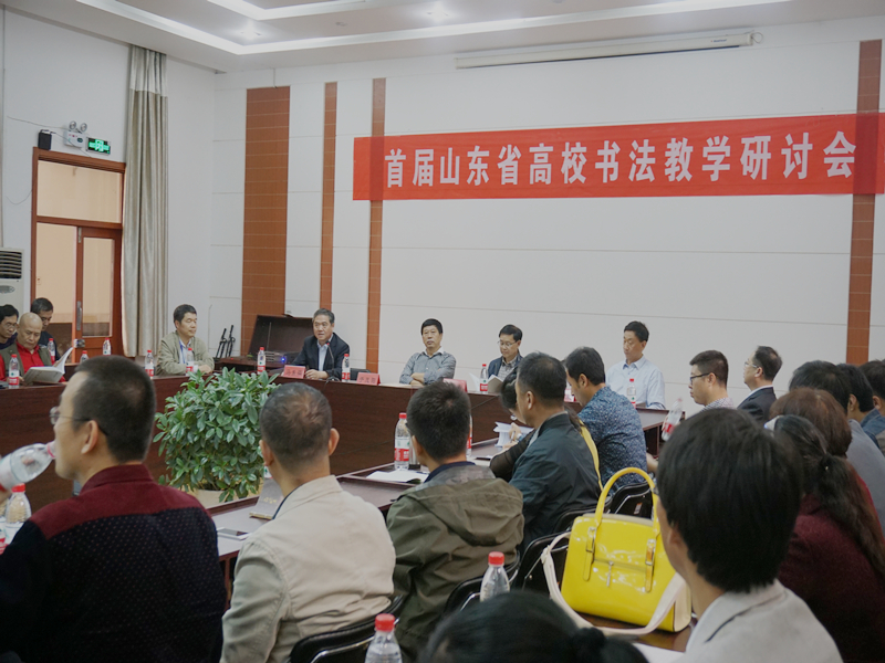 10月22日,首届山东省高校书法教育研讨会在我校。山东省教育书法家协会主席、原山东工艺美术学院党委书记于茂阳,原青岛大学党委书记夏临华,山东省教育书法家协会秘书长王积众,我校党委书记荆兆勋、副校长马东骅等出席了开幕式。