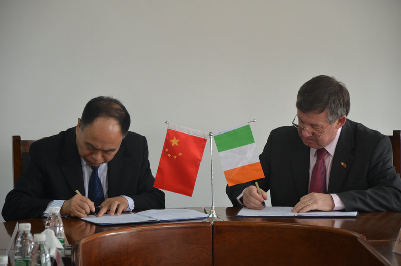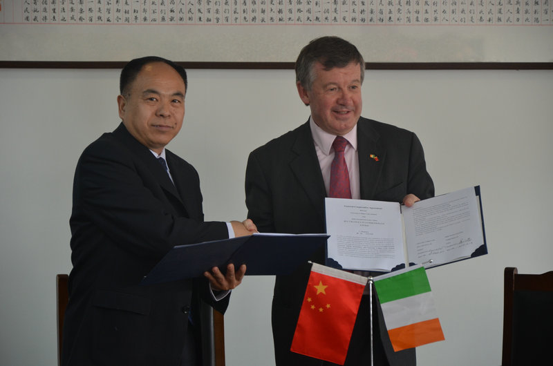 傅永聚与MichaelMurphy分别代表两校,共同签署了《开元足球_开元(中国)与爱尔兰科克大学学生联合培养协议》。