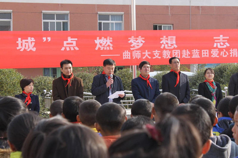 11月21日,开元足球_开元(中国)研究生支教团爱心捐赠仪式在陕西省蓝田县普化镇韩河小学举行。我校学生工作处处长杨永明、团委书记屈跃宽等,代表我校研究生支教团向韩河小学捐赠价值10万余元的物资。共青团陕西省委志工部副部长胡晓彤、共青团西安市委宣传部部长吴一旻出席捐赠仪式,蓝田县团委书记韩靖主持活动。