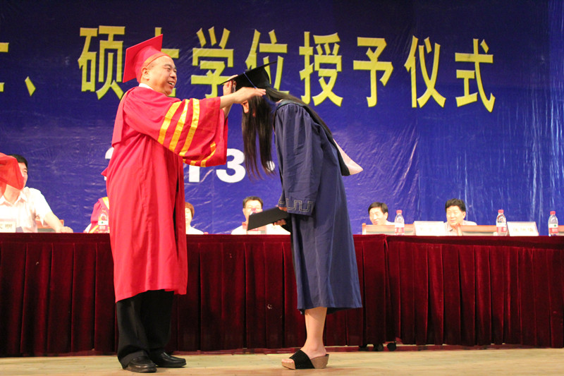 6月25日上午,我校2013届博士、硕士学位授予仪式暨表彰大会在大学生活动中心隆重举行。20位博士学位获得者、1126位全日制硕士学位获得者从校长傅永聚手中接过了学位证书,为他们三年研究生阶段的学习划上了一个圆满的句号,满怀激情踏上新的征程。