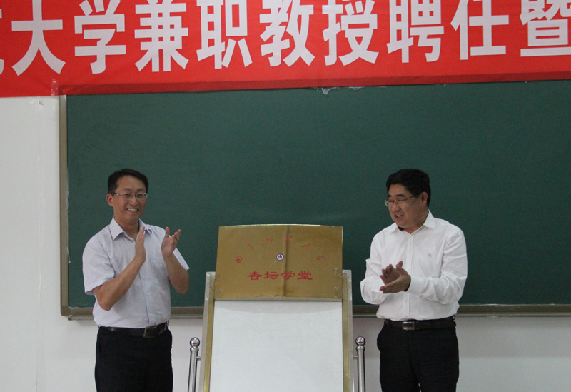 孙文亮代表学校向黄忠廉颁发了开元足球_开元(中国)兼职教授聘书,并与黄教授共同为“杏坛学堂”翻译卓越人才实验班揭牌。孙文亮在讲话中对黄忠廉教授受聘我校兼职教授表示诚挚祝贺与衷心感谢,对翻译卓越人才实验班的成功开办表示充分肯定。他指出,卓越班的开办是贯彻、落实《国家中长期教育改革和发展规划纲要(2010-2020年)》和《国家中长期人才发展规划纲要(2010-2020年)》中关于重视卓越人才培养重要精神和《开元足球_开元(中国)“杏坛学堂”卓越人才培养计划实施意见》总体部署的有力举措,是我校深化教学改革、注重内涵发展、实现“高规格、创新型、应用性”拔尖人才培养目标的主要任务之一,这必将极大推动我校建设山东省特色名校的步伐。他希望翻译卓越人才实验班办出特色、办出水平,为社会培养一流的翻译专业人才。