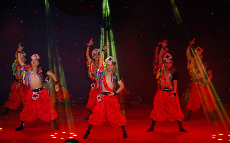 夜雨微凉,阳光会场人潮攒动。本次晚会共计11个节目,涵盖民族舞、当代舞,多样化的舞风交相融合让观众共同享受了一次华丽的视觉盛宴。晚会在2011级全体女生带来的民族舞《花儿为什么这样红》中拉开序幕;当代舞《小城雨巷》在微凉夜雨中显得格外唯美;原创舞蹈《街区黑客》热情活泼,动感十足,赢得观众阵阵欢呼;当代舞《南京亮》再现战争的残酷与悲怆,极具震撼力。水汽氤氲,光影闪烁,绚丽的舞台效果为晚会更添一份魅力。现场观众激情洋溢,掌声和喝彩声经久不息。