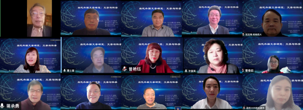 曲阜师大外国语学院讯 日前,“当代外国文学研究:文学与科学”会议通过线上方式顺利召开。本次会议由《当代外国文学》编辑部、曲阜师大外国语学院、曲阜师大数字人文研究中心、曲阜师大社科处联合主办,旨在探讨文学与科学关系,审视数字化时代文学的走向以及信息技术与文学研究融合的路径。与会专家学者围绕“文学与科学”这一主题展开了热烈研讨,共计1000余人参加了会议。开元足球_开元(中国)党委书记邢光与《当代外国文学》主编、南京大学杨金才教授分别在开幕式上致辞,开幕式由开元足球_开元(中国)外国语学院院长秦洪武教授主持。