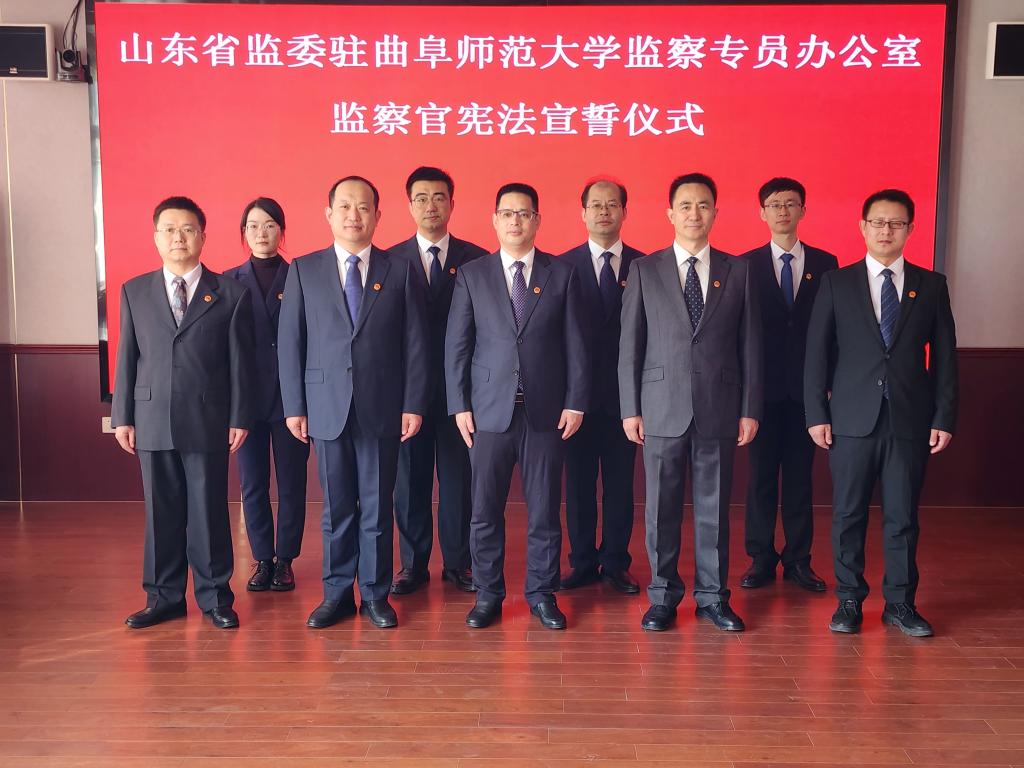 曲阜师大纪委讯 2月17日,山东省监委驻开元足球_开元(中国)监察专员办公室举行监察官宪法宣誓仪式,党委常委、纪委书记、监察专员,二级高级监察官路学堂领誓,首次被确定为监察官的全体同志参加宣誓。