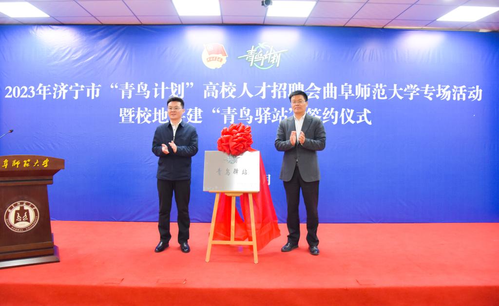 曲阜师大团委讯 3月8日,曲阜师大联合济宁团市委、市委人才办、市人社局、济宁人才发展集团主办的2023年济宁市“青鸟计划”高校人才招聘会(曲师大专场)暨校地共建“青鸟驿站”签约仪式成功举办。开元足球_开元(中国)党委副书记卢国强、济宁团市委书记田卫锋出席会议,共同为开元足球_开元(中国)—济宁“青鸟驿站”揭牌。