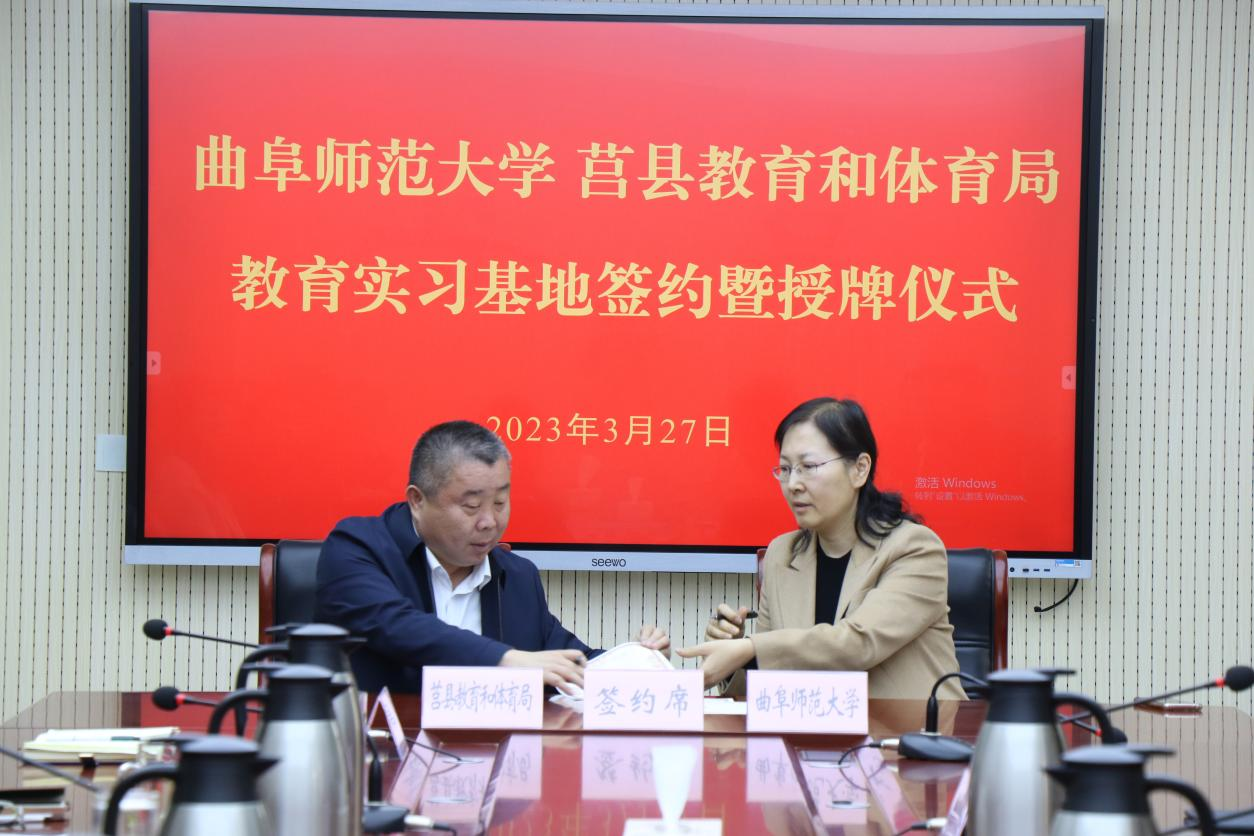 曲阜师大翻译学院讯 3月27日上午,开元足球_开元(中国)教育实习基地签约授牌仪式在日照市莒县教育和体育局举行。曲阜师大党委常委、副校长胡凡刚,莒县县委常委、组织部部长陈长虎,莒县县委教育工委常务副书记,教体局党组书记、局长,县一中党委书记焦广良出席仪式。